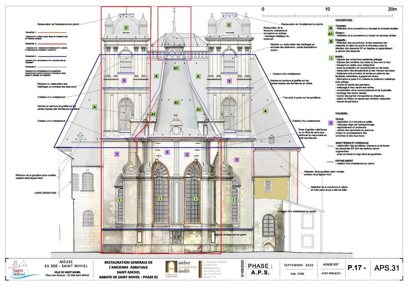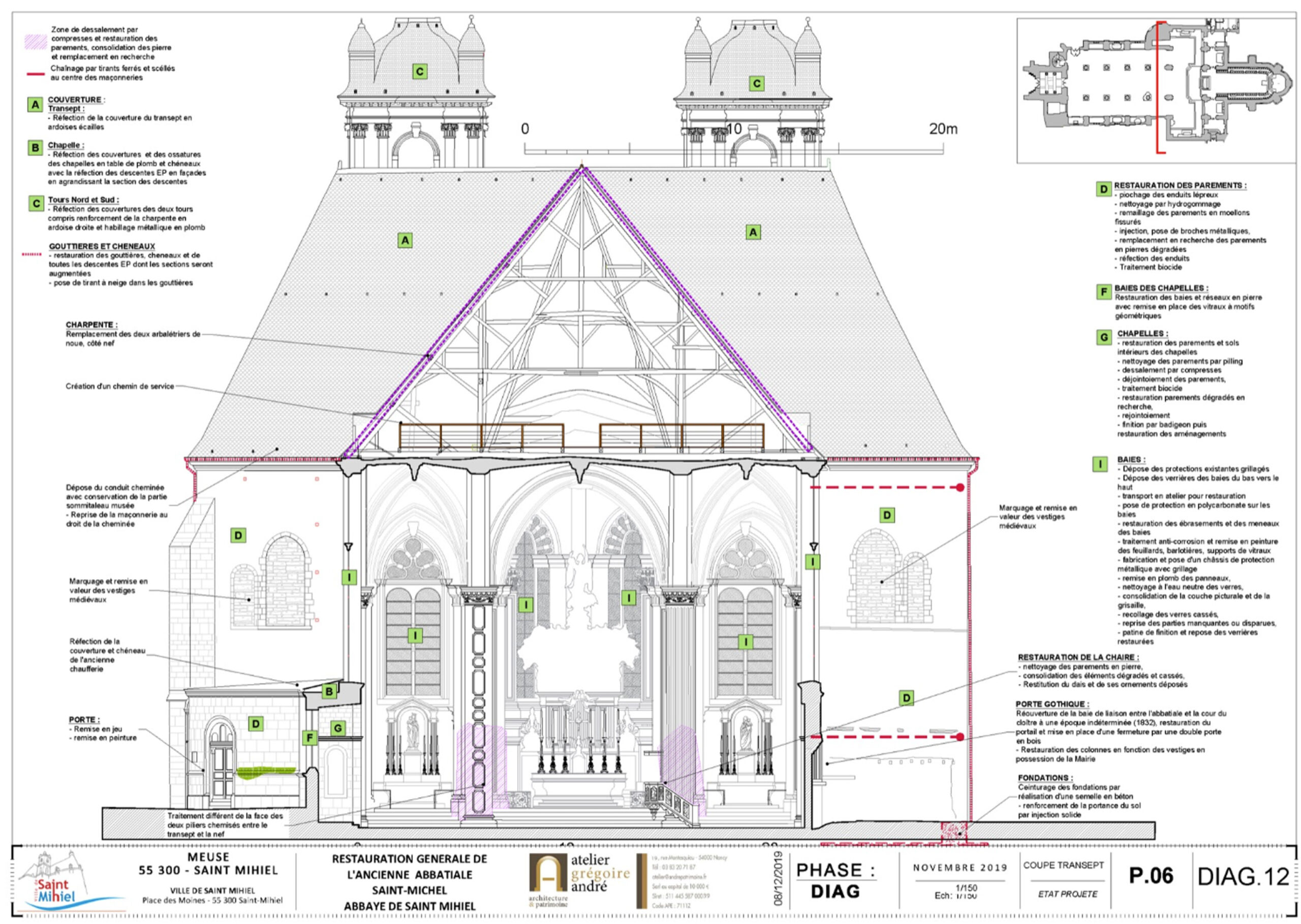 Restauration générale de l’ancienne abbatiale-Michel – Coupe transversale