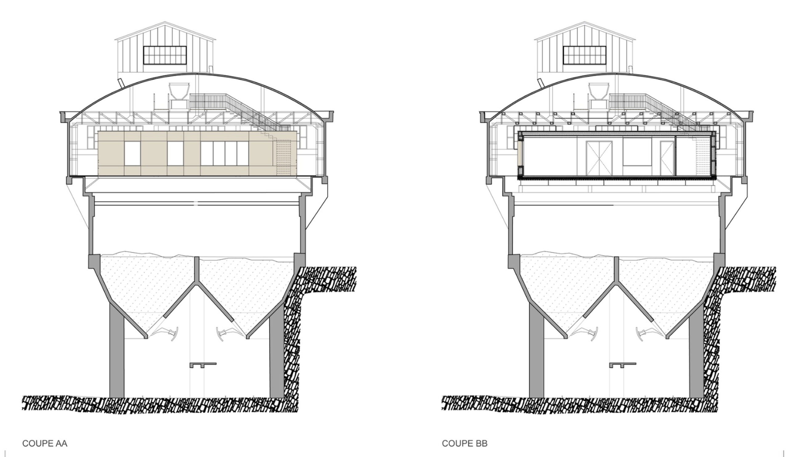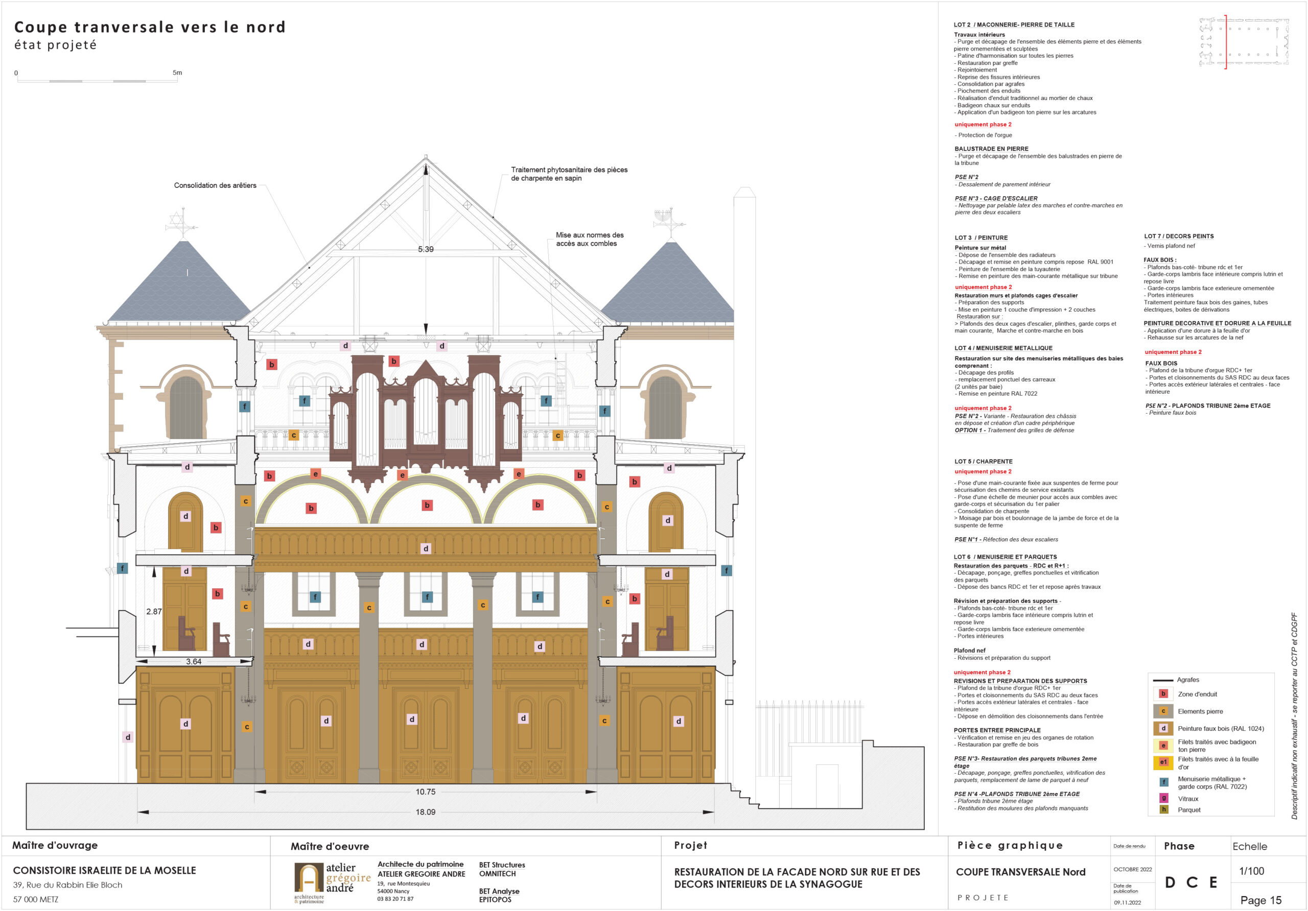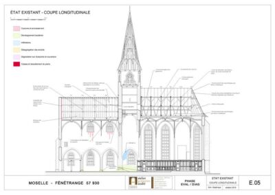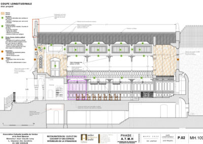 Restauration du clos et du couvert de l’ancienne collégiale St-Rémy – Coupe longitunale