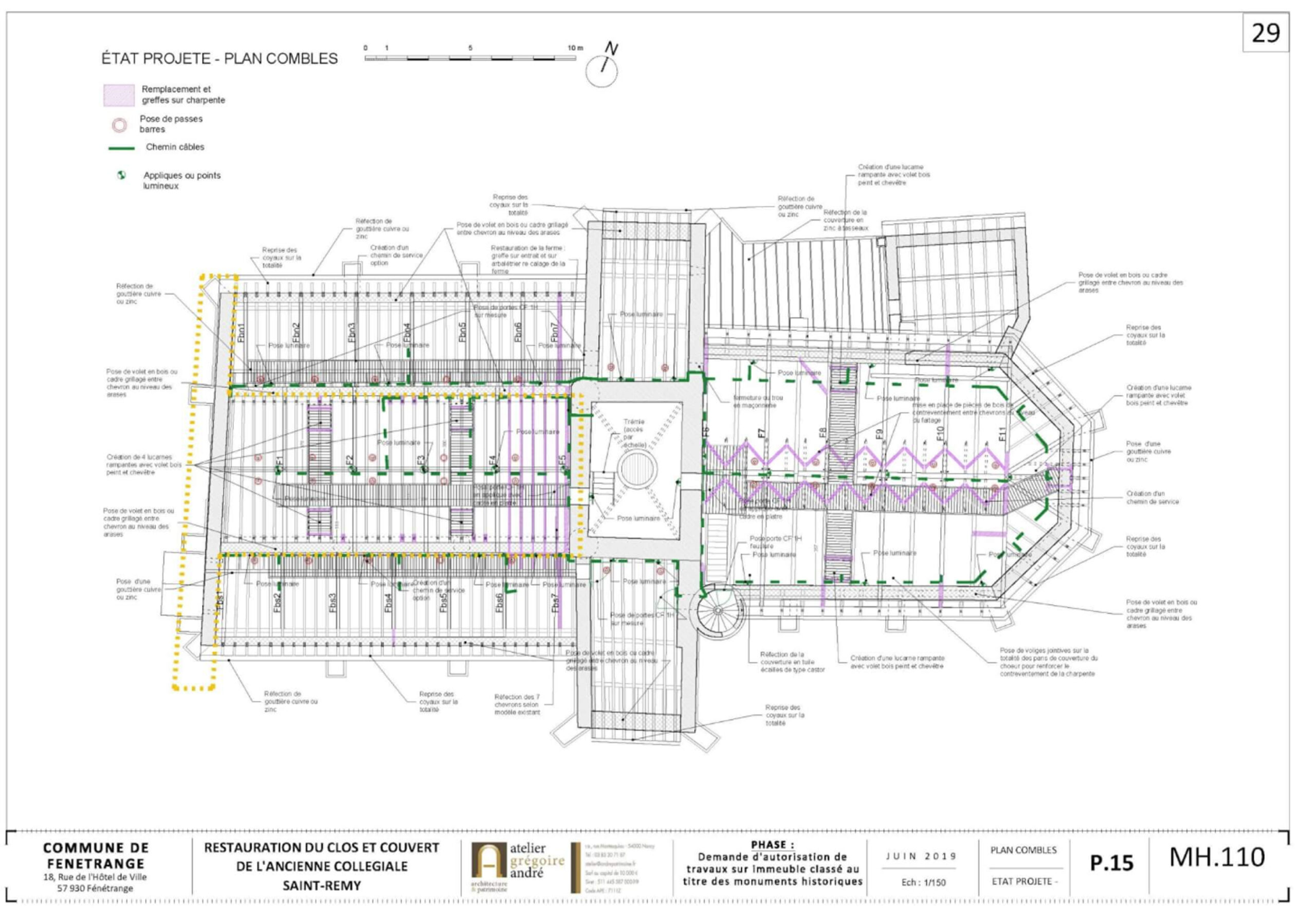 Restauration du clos et du couvert de l’ancienne collégiale St-Rémy – Plan des combles
