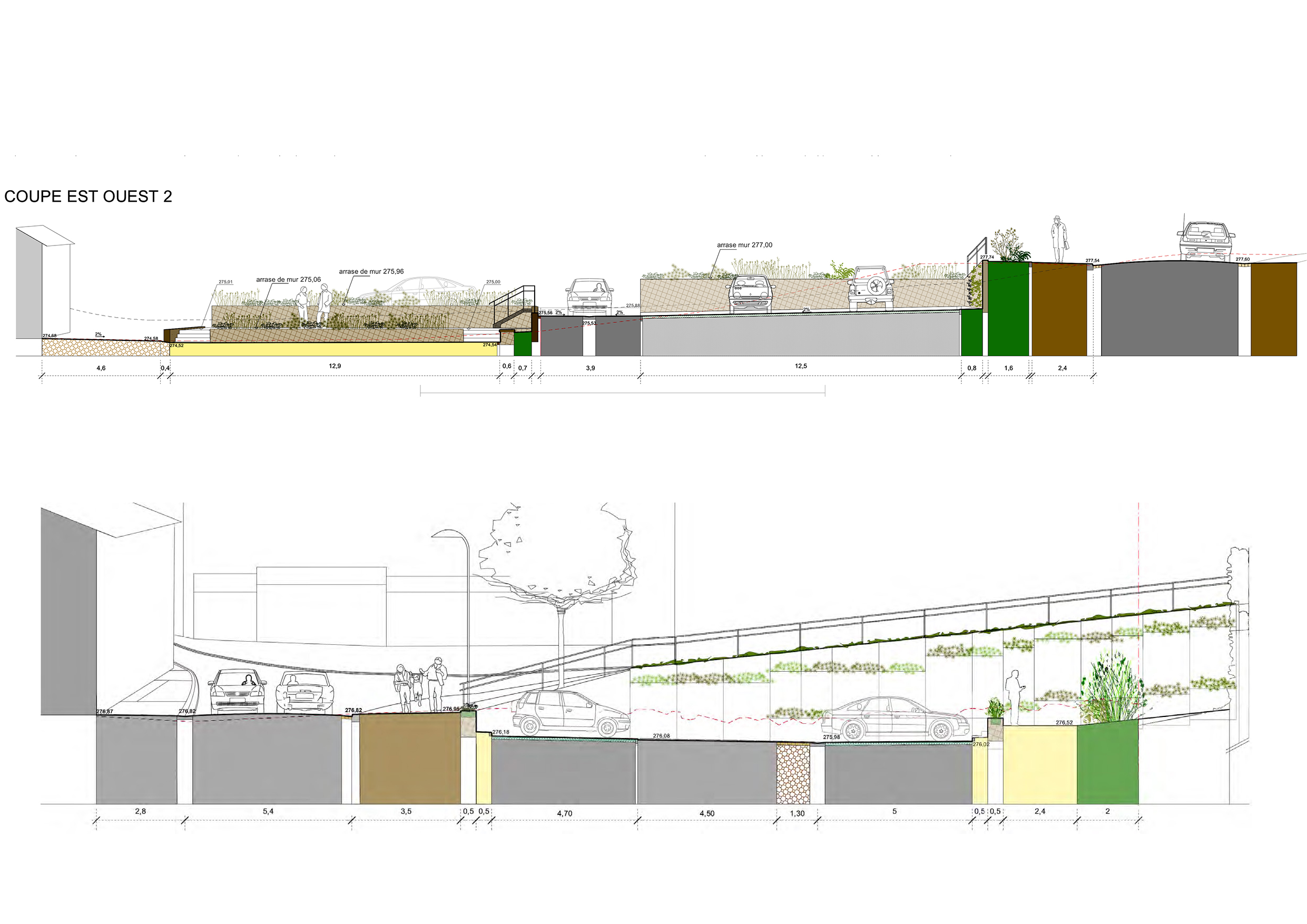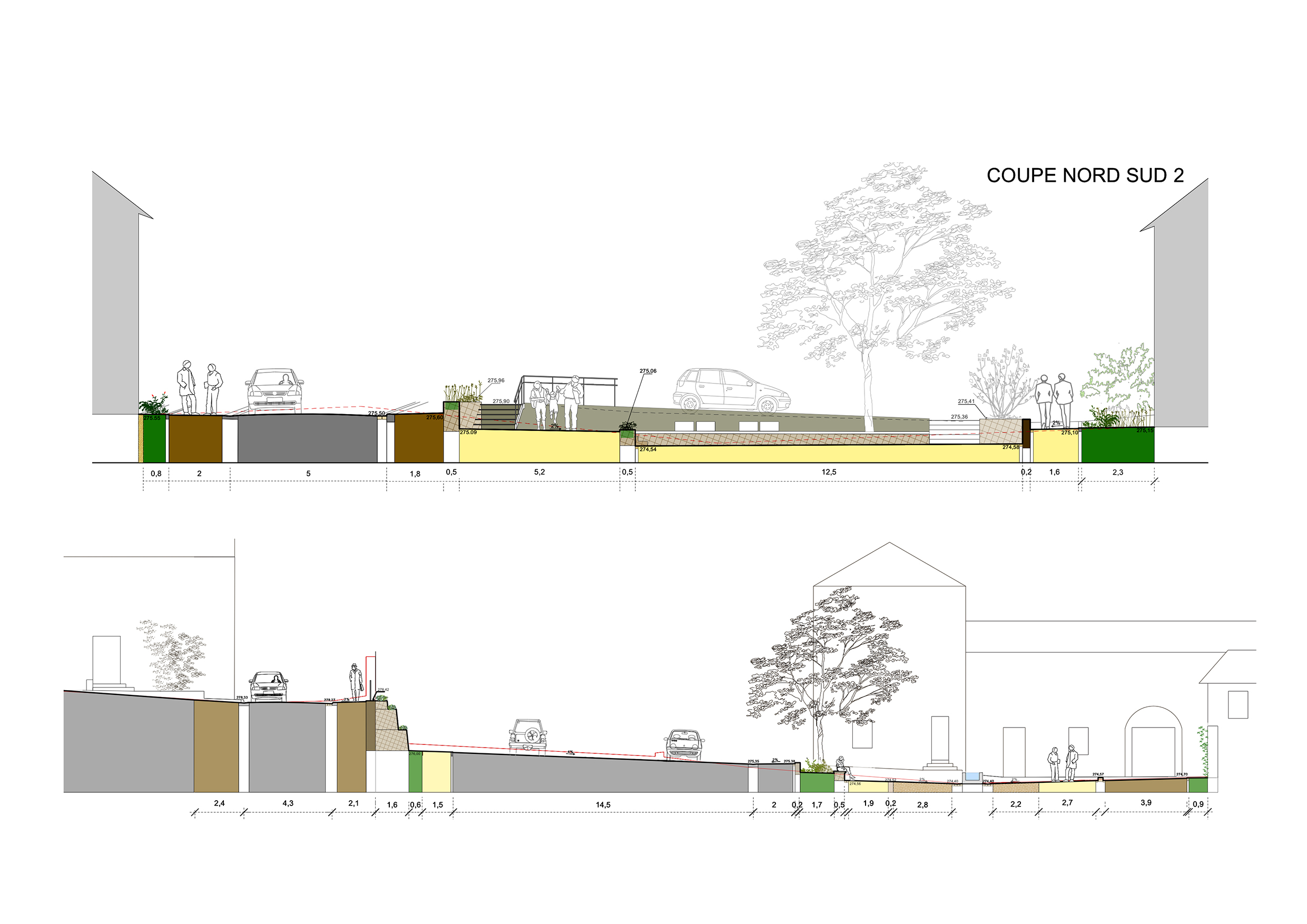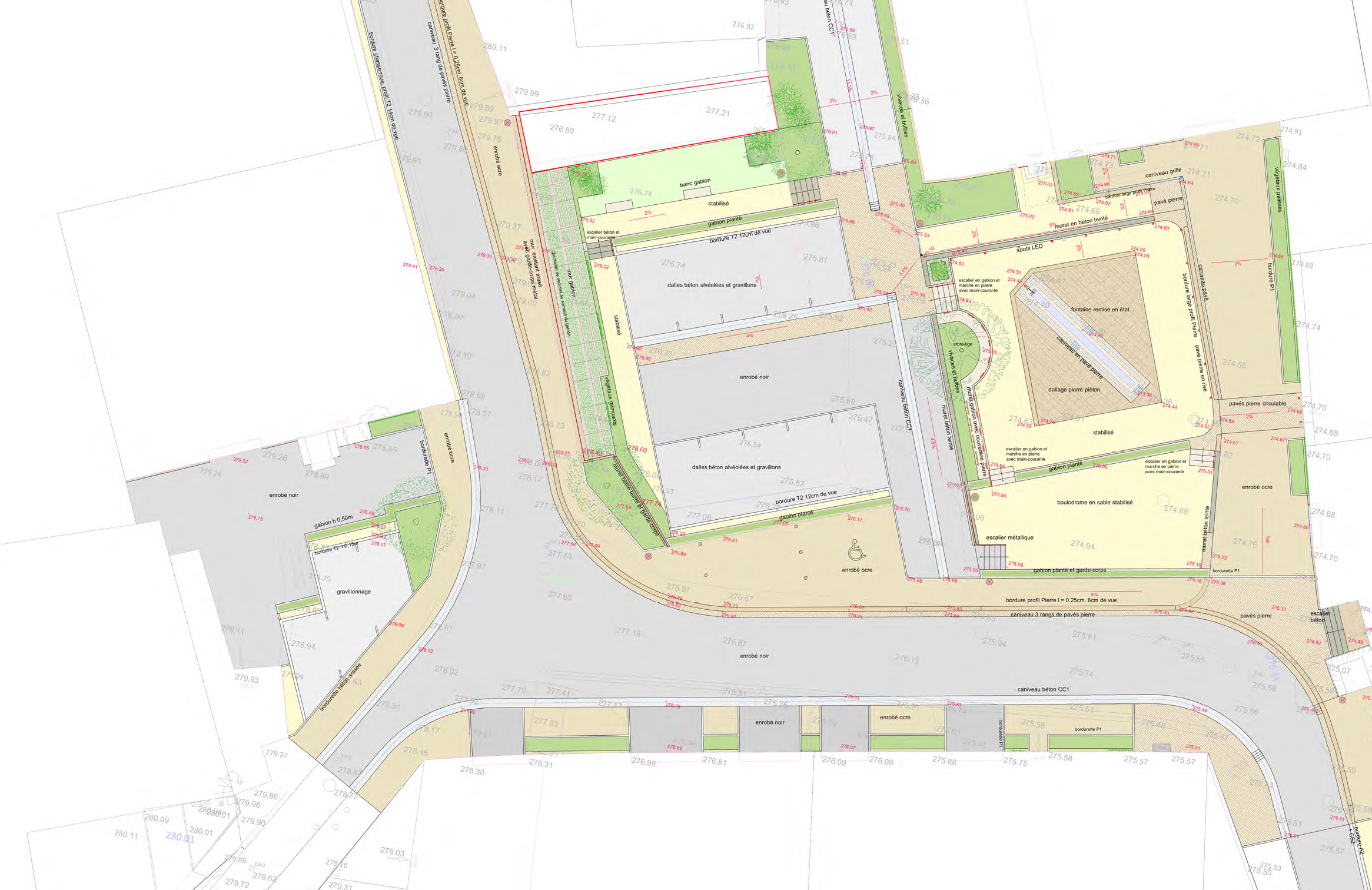 Aménagement de la place du père Gérard et de la rue de la Cure. Réalisation des coupes techniques